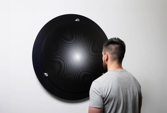 Activada por la presencia del espectador, Dispositivo Dinámico I propone una relación directa entre cuerpo, atención y percepción. La proximidad física pone en marcha el dispositivo y transforma la observación en una experiencia situada, donde luz, transparencia, sonido mecánico y movimiento se integran en una sola unidad sensorial. La pieza explora así cómo el orden matemático puede producir una experiencia estética dinámica, hipnótica y sensible.